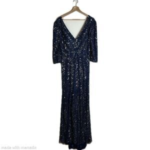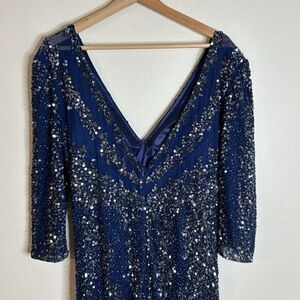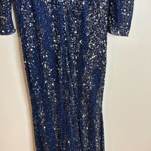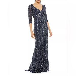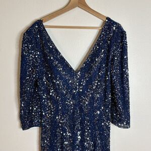 Mac Duggal Bead-Embellished Body-Con Gown in midnight navy sequin dress size 10