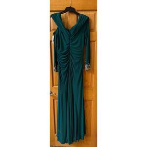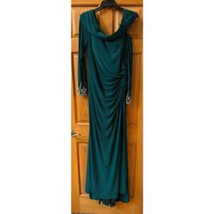 Mac Duggal Beaded Cuff Drop Shoulder Faux Wrap Emerald Gown Women’s 12 Dress