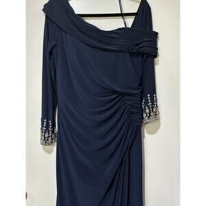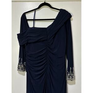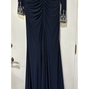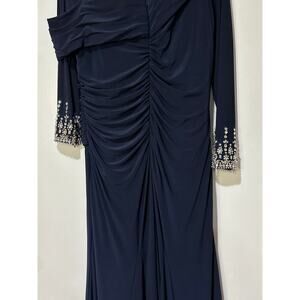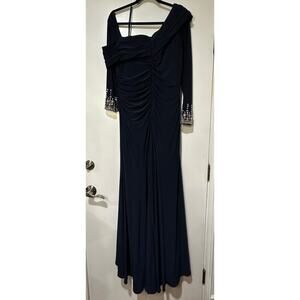 Mac Duggal Beaded Cuff Drop Shoulder Faux Wrap Long Navy Gown Size 14 NWT #12231