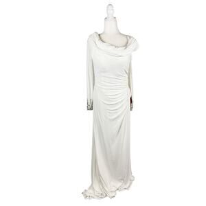 Mac Duggal Beaded Cuff Off-Shoulder Faux Wrap Gown White NWT Size 12