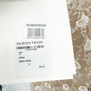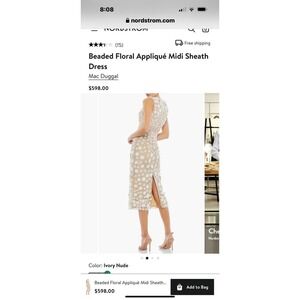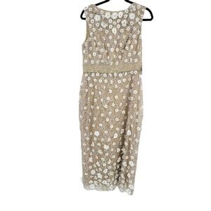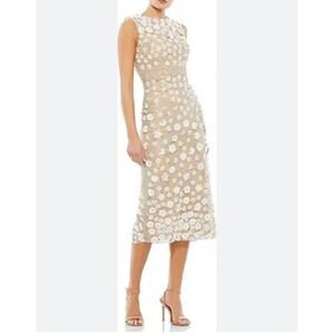 Mac Duggal Beaded Floral Appliqué Midi Sheath Dress Ivory Nude Size 10 NWT