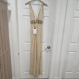 Mac Duggal Beaded Gold Gown