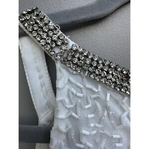 Mac Duggal Beaded Halter Neck Column Sheath Gown Sleeveless White Bridal Sz 14
