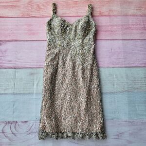 Mac Duggal Beaded Lace Bodycon Sheath Formal Knee Length Cocktail Dress 8