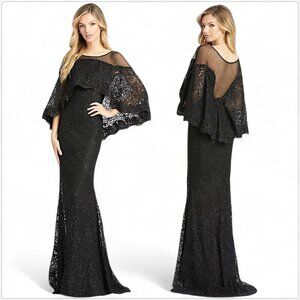 Mac Duggal Beaded Lace Cape Mermaid Train Evening Formal Dress Gown NWT New 6
