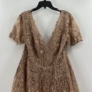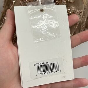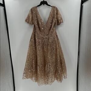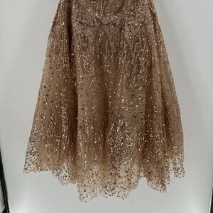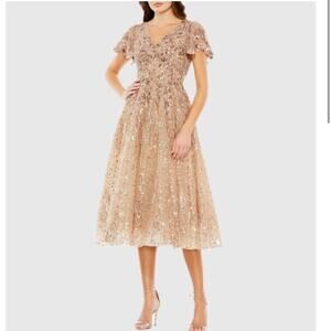 New with tags Mac Duggal Beige Embellished Butterfly Fit and Flare Tea-Length Dress Style 20392