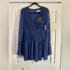 Mac Duggal Bell Long Sleeve Chiffon Fit & Flare Minidress NWT Style 26411