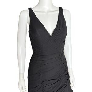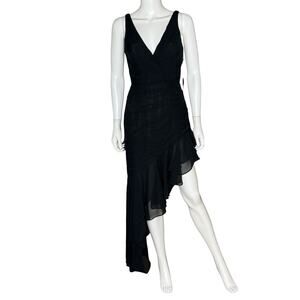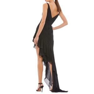 Mac Duggal Black Asymmetrical Ruffled V-Neck Chiffon Dress 49487 Women’s Sz 4