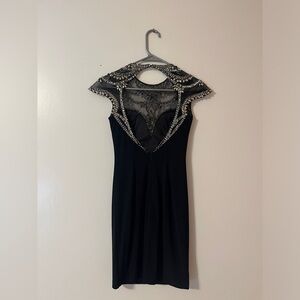 Mac Duggal Black Bodycon Cocktail Dress High Neck 65273N