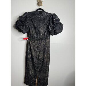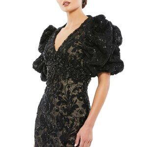 Mac Duggal Black EMBELLISHED PUFF SLEEVE V NECK DRESS Knee Length 12440 Sz 4 NWT