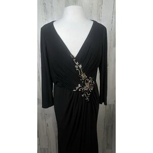 Mac Duggal Black Faux Wrap Long Sleeve Evening Gown with Appliqué Detail Size 12