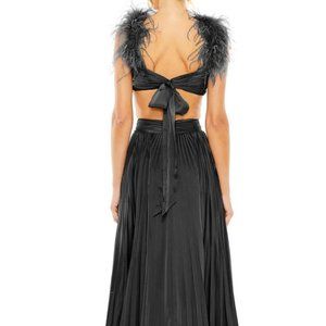 Mac Duggal Black Feather Cutout Pleated Open Back Gown Prom Gown Formal Dress