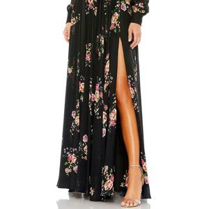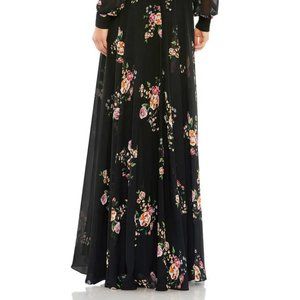 Mac Duggal Black Floral Long Sleeve Empire Waist Chiffon Maxi Dress