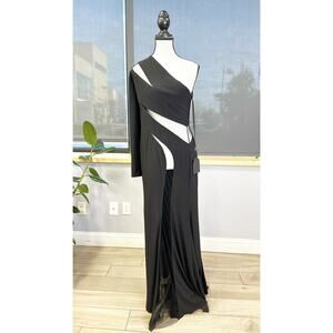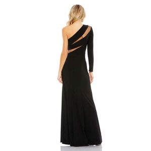 Mac Duggal Black Jersey Illusion Cutout One Shoulder Maxi Dress Size 8