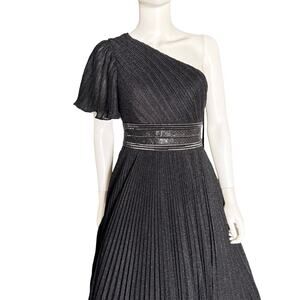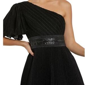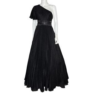 Mac Duggal Black Pleated Shimmering Georgette One Shoulder Gown 30777 Women’s