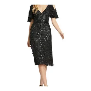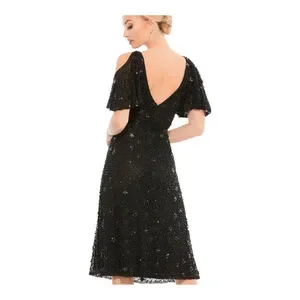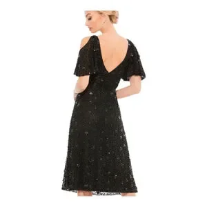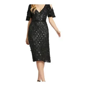 Mac Duggal Black Sequin Cold Shoulder Cocktail Dress Size 12