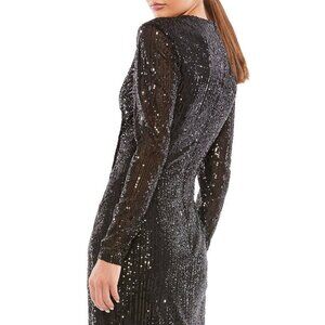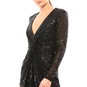 Mac Duggal Black Sequin V-Neck Long Sleeve Ruched Hi-Low Dress Size 12 $358