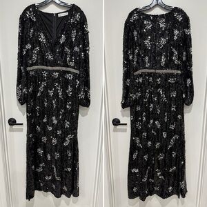Mac Duggal $1598 Black Sequins and Rhinestone Embellished Wrap Over Bishop Sleeve Gown in size 14.