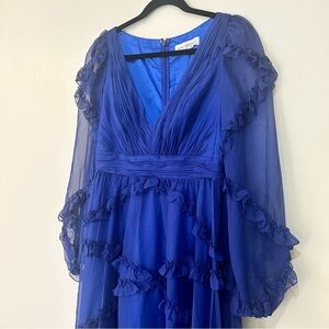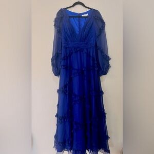Mac Duggal Blue Cascade Ruffle Puff Sleeve A Line Gown Size 10 Style #A68223