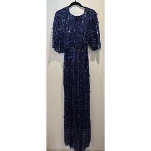 Mac Duggal Blue Gown Womens 10 Style# 4611D Embellished Beaded Dress Sequin READ