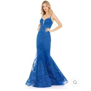 Mac Duggal Blue Lace gown in size 4 NEW $798