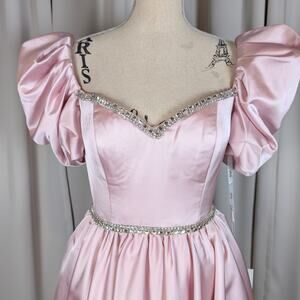 Mac Duggal Blush Pink Satin Puff Sleeve Cocktail Dress Size 8 NWT