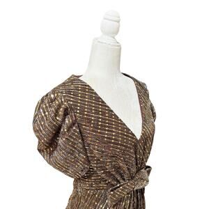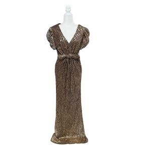 Mac Duggal Bow Waist Cap Sleeve Metallic Gown New with Tag Size 4 Style 26661