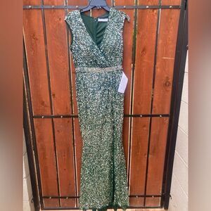 Mac Duggal CAP SLEEVE SEQUINED HIGH SLIT GOWN Frog green size 6 NWT