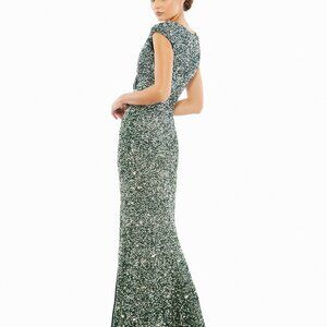Gorgeous! All eyes will be on you! NWT. Perfect Condition! Brand new. All original tags attached. Elegant Mac Duggal Cap Sleeve Sequined High Slit Gown in Forest Green, Size 6. If you want to stand out at any formal event, this dress is for you. It's absolutely gorgeous!