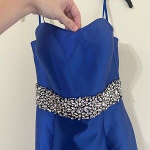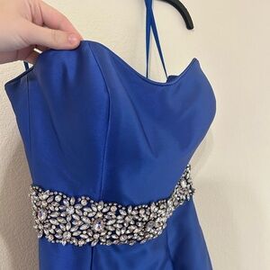 Mac Duggal Cassandra Stone Blue Silver Belteded Gem Design Size 4 Formal Dress