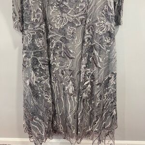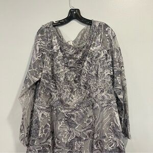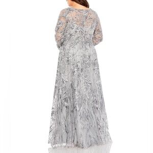 Mac Duggal Charcoal Floral Embroidered Embellished Long Sleeve High Neck Gown