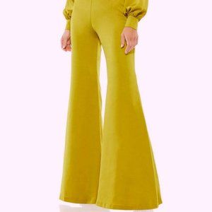 Mac Duggal Chartreuse Long Sleeve Flare Leg Satin Jumpsuit