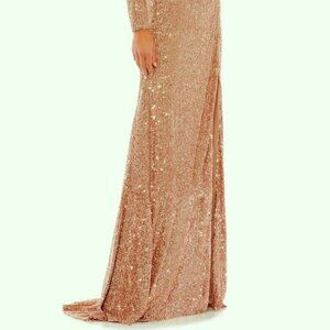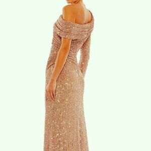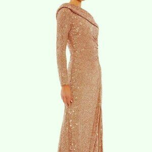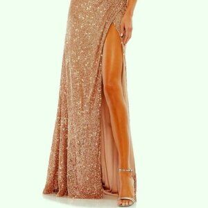 Mac Duggal Copper Sequin One-Shoulder Side Slit Gown