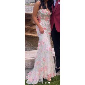 Mac Duggal Corset Floral Sequin Embellished Gown Maxi Dress Size 6 NWT 68180