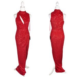 Mac Duggal Cut Out Sequin Maxi Dress 2 Red NWT