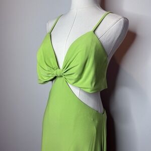 Mac Duggal Cut Out Twist Open Back Sag Green Midi Dress Womens Size 6 27110