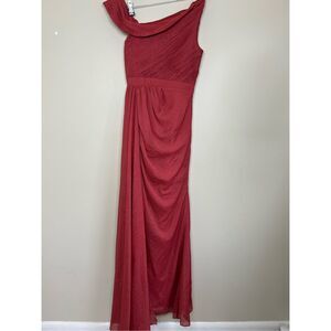 Mac Duggal Draped Drop Shoulder Evening Gown