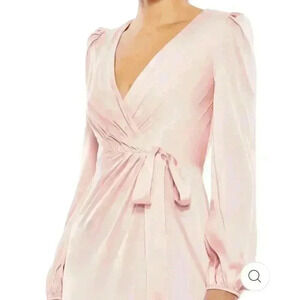Mac Duggal 55624 Draped Faux Wrap Puff Long Sleeve Gown Size 6 ($298) Rose Pink