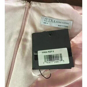 Mac Duggal Draped Wrap Puff Long Sleeve Gown 6 Rose Maxi Dress Slit Silk Bow Tie