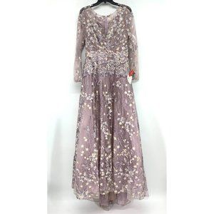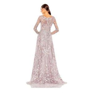 Mac Duggal Dress Womens Size 6 Floral Embroidered Long Sleeve Mesh Gown 20402. New with outside return tag still attached. Back zipper. Inside lining.