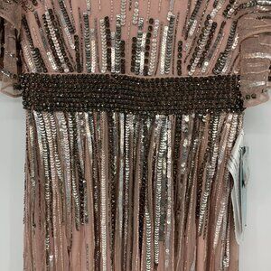 Mac Duggal Dress Womens Size 4 Embellished Full Length Layered Sleeve Gown Pink Sequin. New with tags and return tag, may have a few missing beads (please check photos, comes with extra beads in bag). Back zipper.