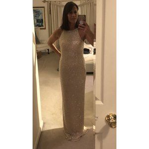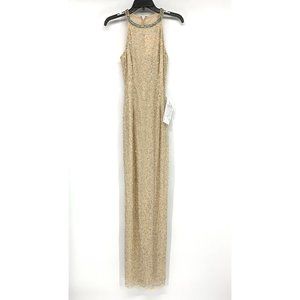 Mac Duggal Dress Womens Size 6 Beaded Sleeveless High Neck Column Gown. New with tags and return tag, 2 missing stones at neckline (see photo), comes with extra beads.