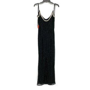 Mac Duggal Dress Black 93551 Beaded Spaghetti Strap Column Gown NWT