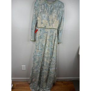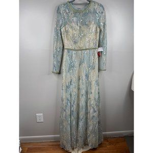 Mac Duggal Dress Gown 12460 Cocktail Formal Embellished Mesh Blue Size 6 NWT