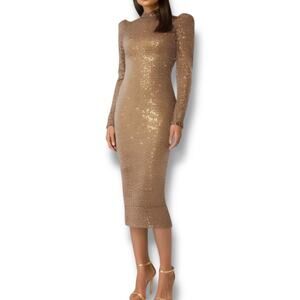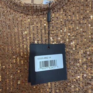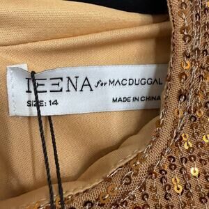 Mac Duggal Dress Size 14 High Neck Puff Sleeve Midi Dress Gold Sequin Formal NWT