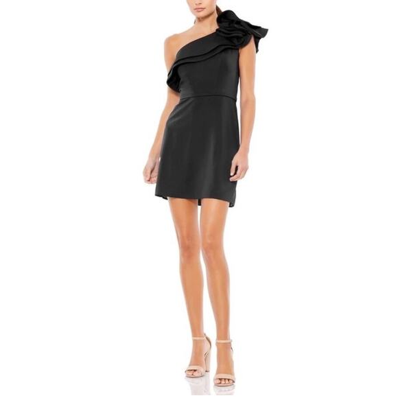 Mac Duggal Dress Size 4 Womens Ieena One Shoulder Ruffle Black A-line Mini NEW