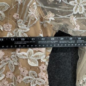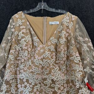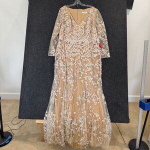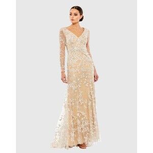 Mac Duggal Dress Women's 24 Beige Emboidered V Neck Long Sleeve Trumpet Gown