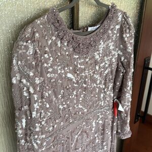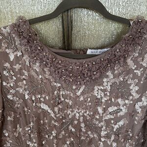 Mac Duggal EMBELLISHED HIGH NECK PUFF SLEEVE FITTED DRESS size 16 NEW $498