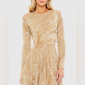 Mac Duggal EMBELLISHED ILLUSION HIGH NECK LONG SLEEVE DRESS 5572 Size 14 Latte