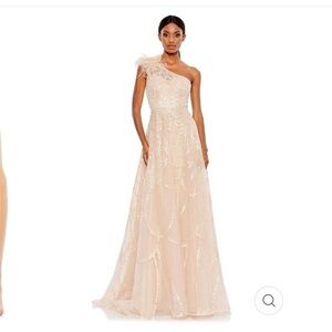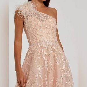 Mac Duggal EMBELLISHED ONE SHOULDER A LINE GOWN size 4 NEW $798 In Peach